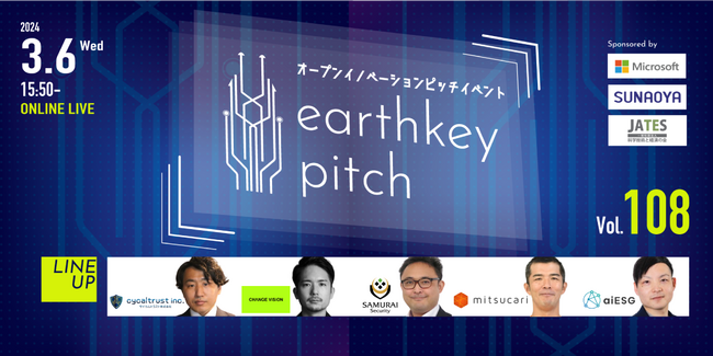 3/6(水)15時50分からearthkey pitch Vol.108を開催!厳選スタートアップ企業5社が熱いプレゼン!