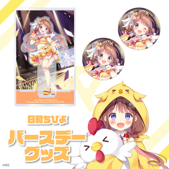 本日・3月1日に誕生日を迎えた日和ちひよのバースデーグッズの詳細を公開するとともに、公式オンラインショップ「VEE Official Shop」にて受注販売を開始しました。