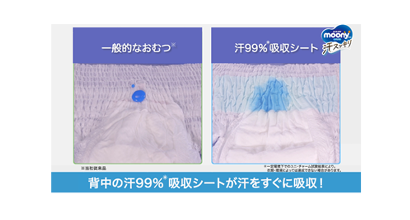 「汗99%(※1)吸収シート」採用で、肌に汗を残さない『ムーニーマン 汗スッキリ』を発売
