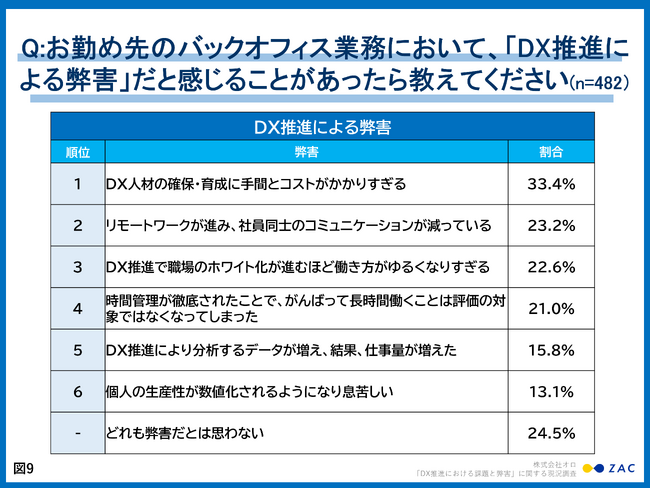 お勤め先のバックオフィス業務において、「DX推進による弊害」だと感じることを質問したところ