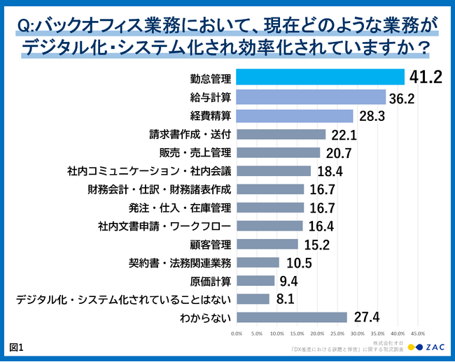 お勤めの会社のバックオフィス業務において、現在どのような業務がデジタル化・システム化され効率化されているかについて質問したところ