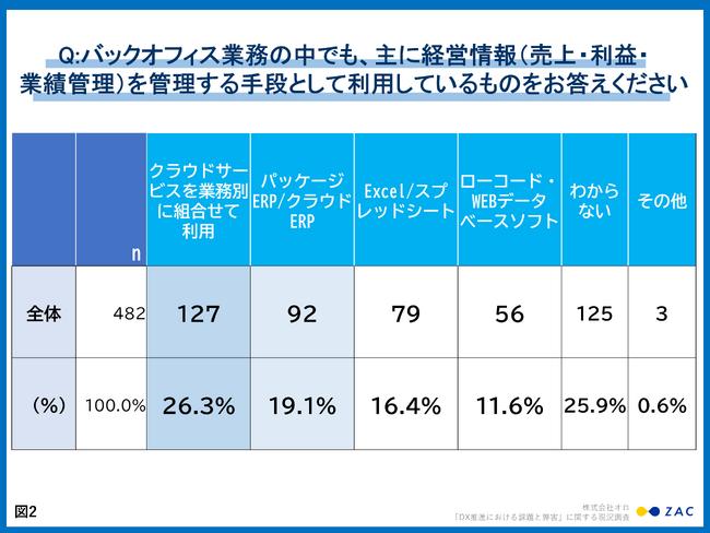 経営情報の管理手段は「クラウドサービスを業務別に組合せて利用」26.3%