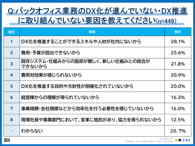 バックオフィス業務のDX化が進んでいない・DX推進に取り組んでいない要因を質問したところ
