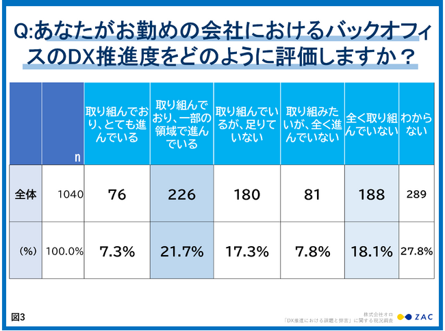 バックオフィスでのDXの取り組み「とても進んでいる」はわずか7.3%