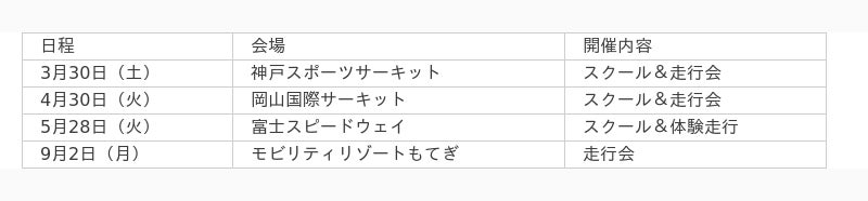 ”KAZE Let’s Ride オンロード” 開催スケジュール