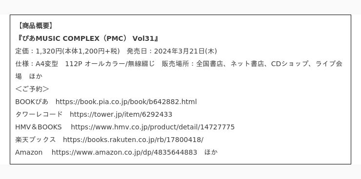 『ぴあMUSIC COMPLEX(PMC)Vol.31』バックカバー