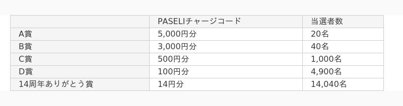 総額140万円分の「PASELI」チャージコードが2万名さまに当たる!「PASELI14周年PASELI祭2024」