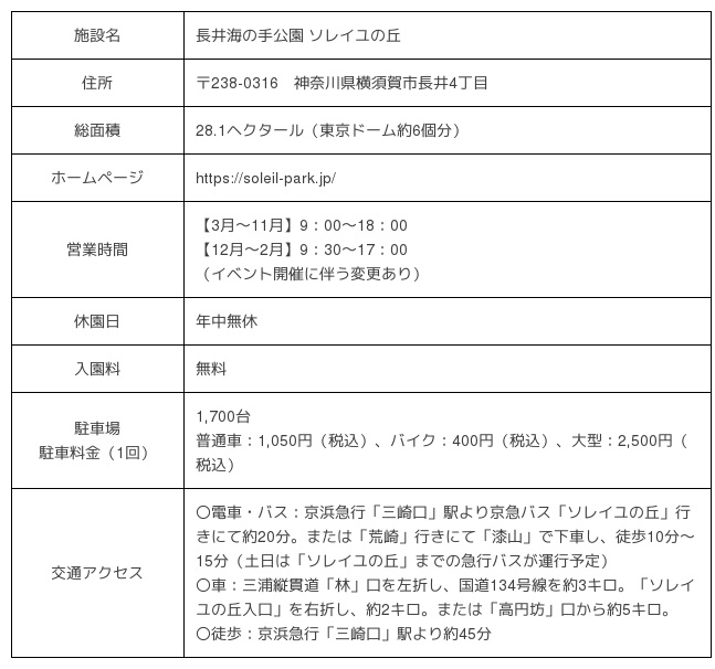 ■「長井海の手公園 ソレイユの丘」について(所在地:神奈川県横須賀市長井4丁目):https://soleil-park.jp/