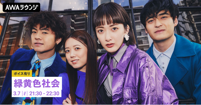 AWA株式会社(本社:東京都港区、代表取締役CEO:冨樫晃己)が運営する、サブスクリプション型(定額制)音楽ストリーミングサービス「AWA(アワ)」は、2024年3月7日(木) 21:30~22:30の1時間に渡り、無料で誰でも参加できるオンライン空間「ラウンジ」で、緑黄色社会の特集イベントを開催いたします。