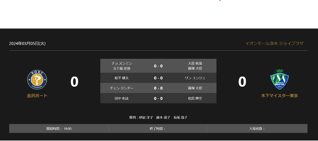 ノジマTリーグ 2023-2024シーズン 公式戦 3月5日開催の「金沢ポート vs 木下マイスター東京」の対戦オーダーを発表いたします。