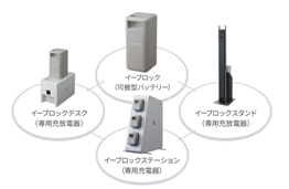 バッテリーと充放電器をセパレート型にした、可搬型バッテリーです。小型・軽量で手軽に持ち運ぶことができます。平常時は充電しながら機器に給電、停電時には自動的にイーブロックから給電が可能です。