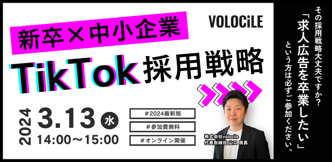 株式会社volocile(本社:東京都港区、代表取締役:山口 辰真、以下「volocile」)は、「求人広告を卒業したい方へ!!新卒×中小企業向け採用戦略(参加費無料)」についてのセミナーを3月13日(水)にオンライン開催いたします。