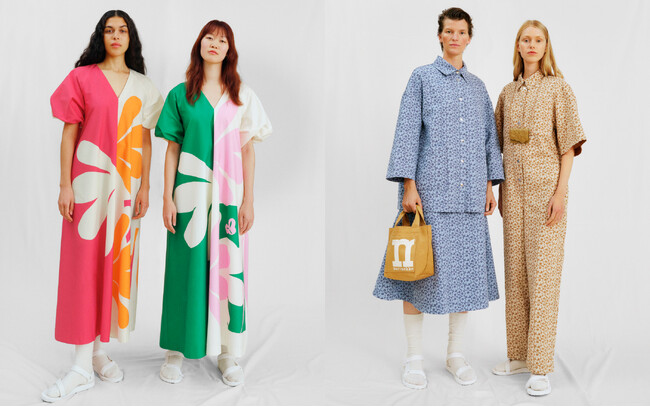 今回のコレクションには、ヘルシンキを拠点に活動するプリントデザイナー アンッティ・ケッキ(Annti Kekki)によってデザインされたヘラッカ(Helakka/明るい)・コルミッコ(Kolmikko/三つ子)などの新作プリントが登場。これらのプリントは誕生60周年のプリント ウニッコ(Unikko)のエッセンスを引き継いだクリエイティブな美学を持っています。