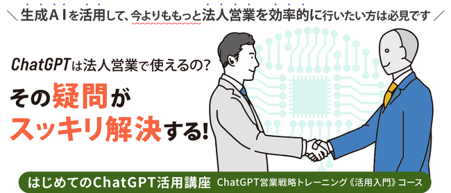4DL Technologies株式会社(本社:千葉県千葉市、代表取締役:荒巻 智隼、以下「4DL」)は新メニューとして、法人営業向けにはじめてのChatGPT活用入門講座を提供開始します。