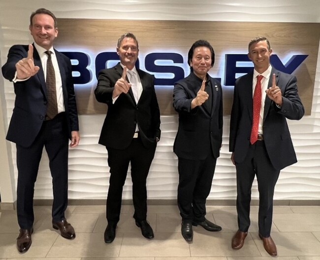 左から)ボズレー社 博士 ケン・ワシニック、ステムソン社 エグゼクティブチェアマン マット・ポーザード氏、当社代表取締役グループCEO 津村 佳宏、ステムソン社 CEO ジェフ・ハミルトン氏