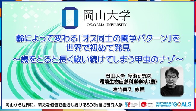 【岡山大学】齢によって変わる「オス同士の闘争パターン」を世界で初めて発見 ~歳をとると長く戦い続けてしまう甲虫のナゾ~