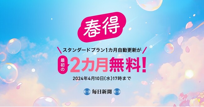 最初の2カ月間無料! 毎日新聞デジタルのスタンダードプラン 「春得」キャンペーン開始