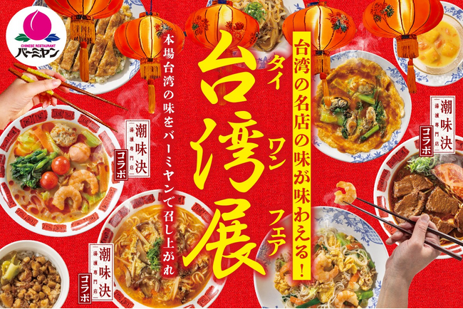 株式会社すかいらーくレストランツ(本社・東京都武蔵野市、代表取締役社長 中島 尚志)が運営するバーミヤンでは、2024年3月14日(木)より期間限定で、台湾全土に約100店舗を展開する「潮味決(チャオ・ウェイ・ジュエ)」との初コラボによるメニューや、本場の台湾屋台グルメを展開する『台湾展(タイワンフェア)』を実施いたします。