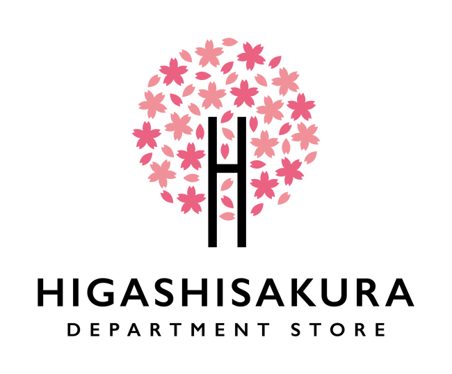 「東桜デパート」の名称は、当社の本社所在地(名古屋市東区東桜)にちなんで生まれました。ロゴは桜の木をモチーフに、ローマ字の頭文字「H」を中央に配し、都道府県と同じ47の桜の花をちりばめています。