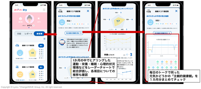 家族の幸せを勝手に追及するバーチャルペット「おせっかいネコ(R)」親御さんの主観的健康感などをスコア化する新機能「タマの通信簿」をリリース