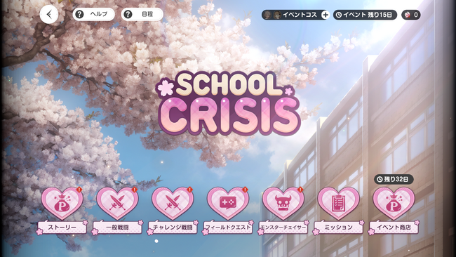 シーズンイベント「SCHOOL CRISIS(スクールクライシス)」は、全10話で構成されており、キャラクターカセット1の学校が舞台になります。ブラウンダスト2でお馴染みのキャラクターが学生に扮して登場します。
