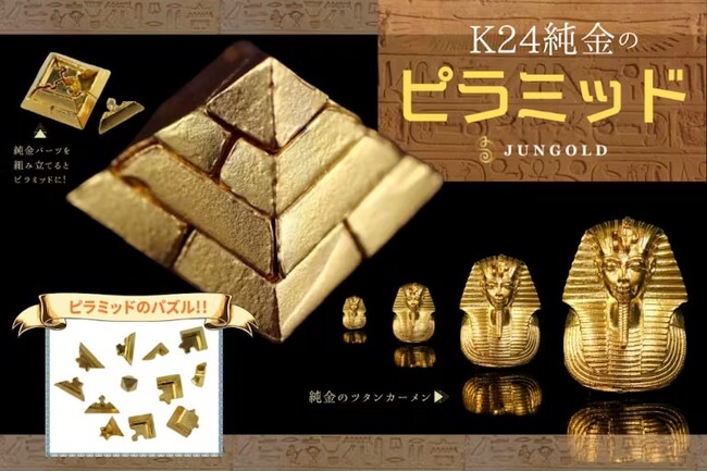 純金製品のJUNGOLDから、組み立て式のパズルのような“ピラミッド”が登場しました。ツタンカーメンと共に無垢の純金製です。