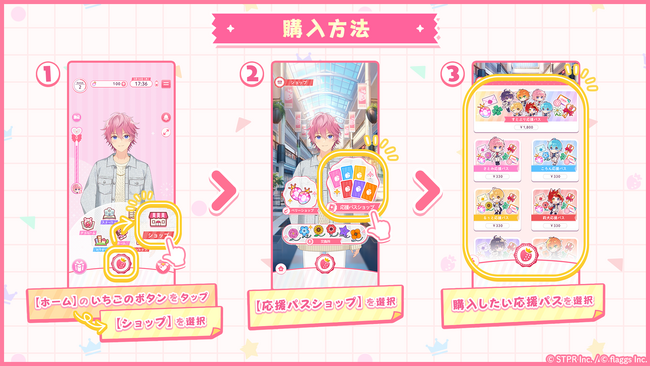 応援パスは、ゲーム内の「ショップ」の「応援パスショップ」から購入いただけます。
