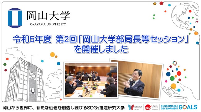 国立大学法人岡山大学(本部:岡山市北区、学長:那須保友)は、大学執行部並びに各部局を代表する教職員が一堂に会して、本学の持続的発展を考える上で重要な事項について検討することを目的とした、部局長等セッションを開催しています。