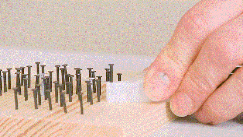 付属のネイルガイドを使えば釘を直接持つことなく釘打ちができます。ハンマーで手を打つ心配が減るため、釘打ちがはじめての方でも安心して楽しむことができます。