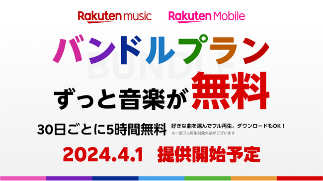 楽天グループ株式会社が運営する定額制の音楽聴き放題サービス「Rakuten Music」は、「楽天モバイル」の「Rakuten最強プラン」ユーザー向けに料金0円で利用可能な新プラン「バンドルプラン」(以下「本プラン」)を4月1日(月)に提供開始します。