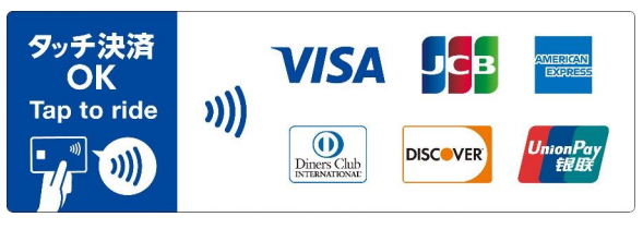 クレジットカードやデビットカード等のタッチ決済のご利用により、事前にICカードへのチャージやきっぷの購入をすることなく、お手持ちのタッチ決済対応のカードや、同カードが設定されたスマートフォン等でスムーズにバスにご乗車いただけます。