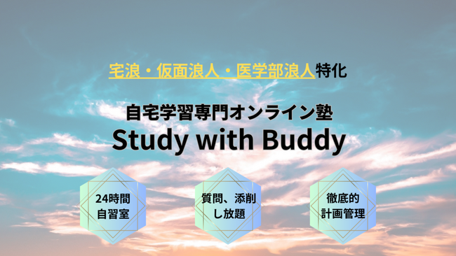 オンライン塾Study with Buddy(代表社員:小林立弥、山本和志、吉田圭佑)は自宅で浪人をする宅浪生、大学で浪人をする仮面浪人、社会人になってからもう一度受験をする再受験生のためのサービスを2023年4月から開始し、2024年4月よりリニューアルします。