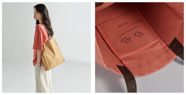 バッグの内ポケットとサイドに、QATモチーフをデザイン。持ち手の素材は合皮なので、キャンバス生地のカジュアルさの中にも少し上品さがプラスされています。「キャメル」と「ピンク」の2色展開で、春のおでかけを鮮やかに彩ってくれます。