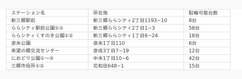 ステーション設置場所の詳細は、こちらをご覧ください。