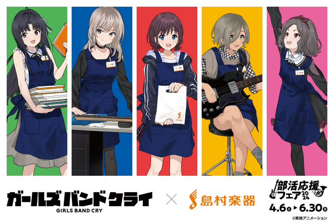 島村楽器株式会社(本社:東京都江戸川区、代表取締役社長:廣瀬 利明、以下 島村楽器)は、全国の軽音楽・吹奏楽部員を応援する『部活応援フェア2024』にて、TVアニメ『ガールズバンドクライ(4月5日より毎週金曜日24時30分~TOKYO MX、BS11、サンテレビ、KBS京都にて放送)』とのコラボレーションを実施いたします。
