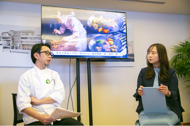 また、セミナー後半は、マーケット・スペシャリストのカレン・バリフの進行で、ゲストスピーカーとして、ザ・モメンタム・バイ・ポルシェ料理長 林祐司氏に登壇いただき、ヨーロピアン ビーフ&ラム from アイルランドを使った料理を生み出した経緯と、レストランメニューに取り入れている理由をお話しいただきました。林料理長は、特に、アイルランドの伝統的な放牧農業のスタイルと、ストレスのない環境で飼育される家畜の印象に触れ、それが肉質の品質につながっていることを強調しました。