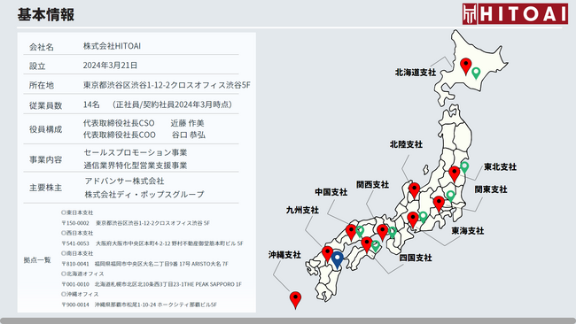 株式会社HITOAIでは、全国9拠点に拠点を展開しております。