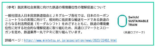 ・当社及び鉄道全体の環境優位性の認知に向けたPR活動の継続