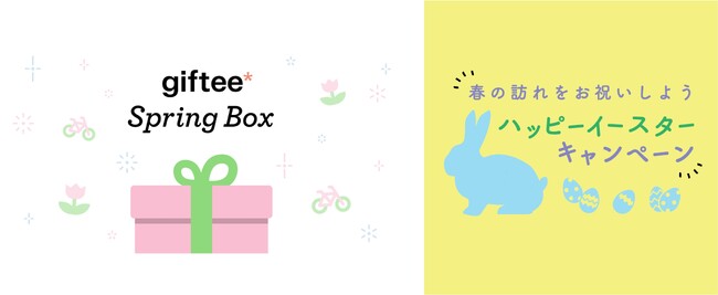eギフトプラットフォーム事業(※)を展開する株式会社ギフティ(本社:東京都品川区/代表取締役:太田 睦、鈴木 達哉/以下、ギフティ)は、eギフト販売WEBサービスおよびスマートフォン向けのアプリ「giftee(R)」にて、イースターをはじめ卒入学や新生活の始まりなど春のイベントにぴったりな企画とギフトを多数ご用意いたしました。ご好評いただいている、春をテーマにピックアップした豊富なギフトから受け取り手が商品を選べるギフトボックス「giftee Spring Box」の販売を開始したほか、特集ページ「春のいろどりギフト」、「新生活を迎える人へ、エールを贈ろう」をそれぞれ公開中です。また、3月26日(火)から、イースター気分を高めるうさぎのキャラクターグッズやエッグスイーツなど、対象アイテムの購入に使用できるギフトコードを先着100名様限定で配布する「ハッピーイースターキャンペーン」を開催します。