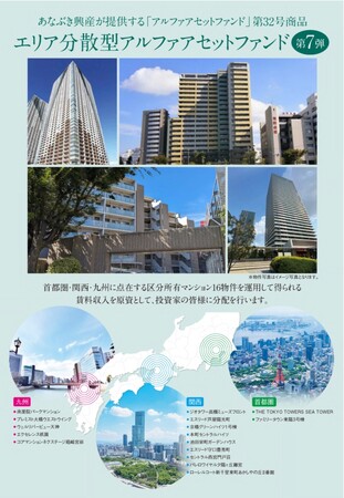 『エリア分散型アルファアセットファンド第7弾』は、穴吹興産が全国で保有する物件の中から首都圏・関西・九州に点在する優良物件16物件が対象。エリアを分散することで局地的な災害リスクなども抑えることができます。