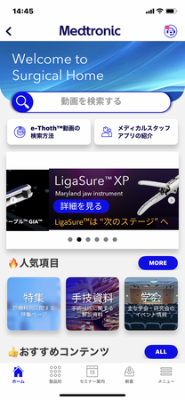 臨床に役立つさまざまな情報に簡単にアクセスできる医療従事者専用のアプリです。メドトロニックの医療従事者向け会員制ポータルサイト「e-Thoth(TM)(イートート)」や「メドトロニックアカデミー」に掲載している、手術手技の解説(資料、動画)や製品情報、主な学会や研究会の情報などのコンテンツが閲覧できます。