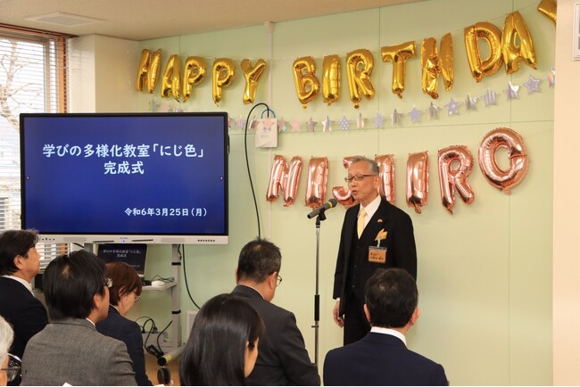 令和6年4月の開室を前に、3月25日(月)に学びの多様化教室「にじ色」の完成式が行われました。