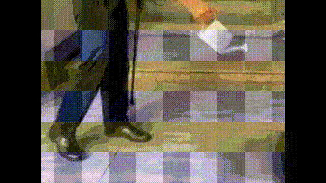 濡れて滑りやすい通路でもしっかりグリップしています。