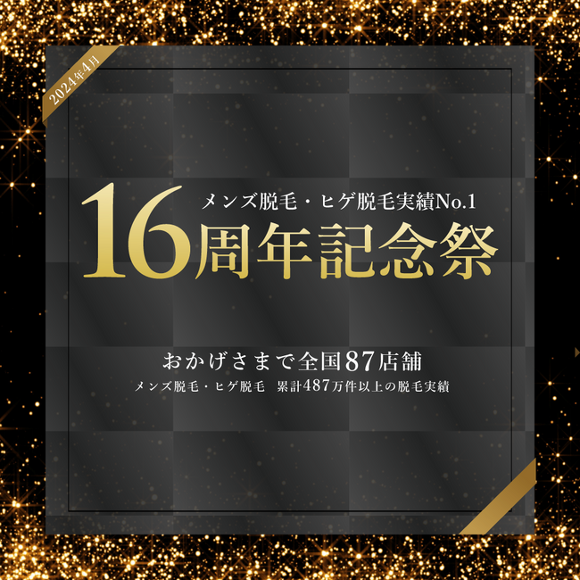 株式会社リンクスホールディングス(本社:大阪府大阪市北区、代表取締役社長:長嶺 拓)が運営するメンズ脱毛専門店 RINX(リンクス)は、2024年4月に創業より16周年を迎えます。おかげ様で全国87店舗を出店することができました。これも偏に、皆様の温かいご支援とご愛顧の賜物と感謝しております。