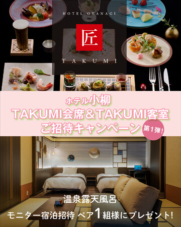 これを記念して、TAKUMI客室とTAKUMI会席を堪能できる”ご招待キャンペーン”を実施致します。