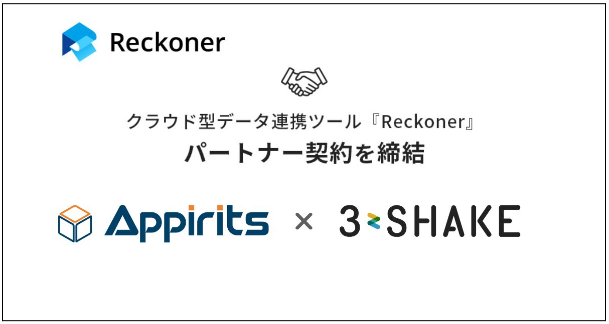 株式会社アピリッツ(本社:東京都渋谷区、代表取締役社長執行役員CEO:和田 順児)は、株式会社スリーシェイク(本社:東京都新宿区、代表取締役社長:吉田 拓真、以下スリーシェイク)と、クラウド型データ連携ツール「Reckoner(レコナー)」において、パートナー契約を締結したことをお知らせします。