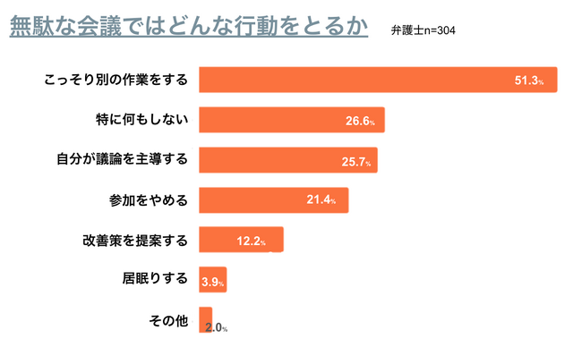 ■ 無駄な会議で弁護士がとる行動の上位は「こっそり別の作業をする」が過半数