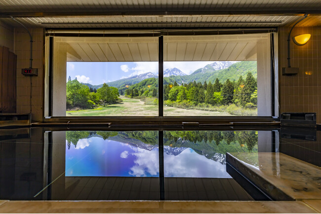お宿では、百名山「妙高山」を望む 展望大浴場と、日本海の恵と新潟の自然が育んだ、旬の味覚、美酒、妙高産のコシヒカリなど、新潟の自慢のお食事をご堪能いただけます。