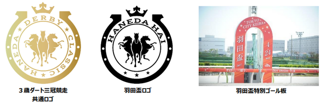TCKでは、羽田盃(JpnI)から始まり「東京ダービー(JpnI)<6 月 5 日(水)>」、「ジャパンダートクラシック(JpnI)<10 月 2 日(水)>」と続く3歳ダート三冠競走のオリジナルロゴを作成いたしました。レース名の象徴である「HANEDA」「DERBY」「CLASSIC」を含めた「3」の要素を馬、王冠、星など様々な場所にデザインし、3歳ダート三冠競走の偉大さ、格式の高さを表現しています。今後は場内映像や広告物などで本ロゴがご覧いただけます。また三冠競走ではゴール板もレースにあわせた特別仕様となりますので、レースをご覧の際はゴール板にもご注目ください。