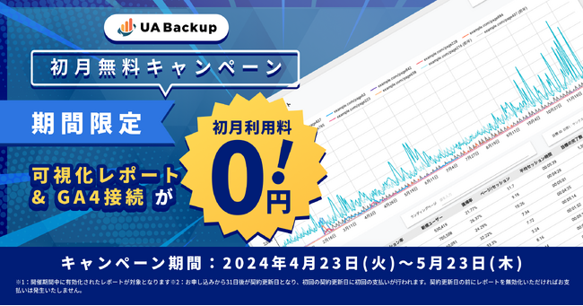 株式会社Convpath(代表取締役:大谷 恭平)は、ユニバーサルアナリティクス(UA)のバックアップを無料で取得できる UA Backup において、「初月無料キャンペーン」を開始いたしました。